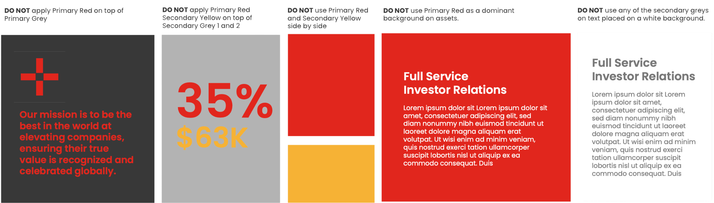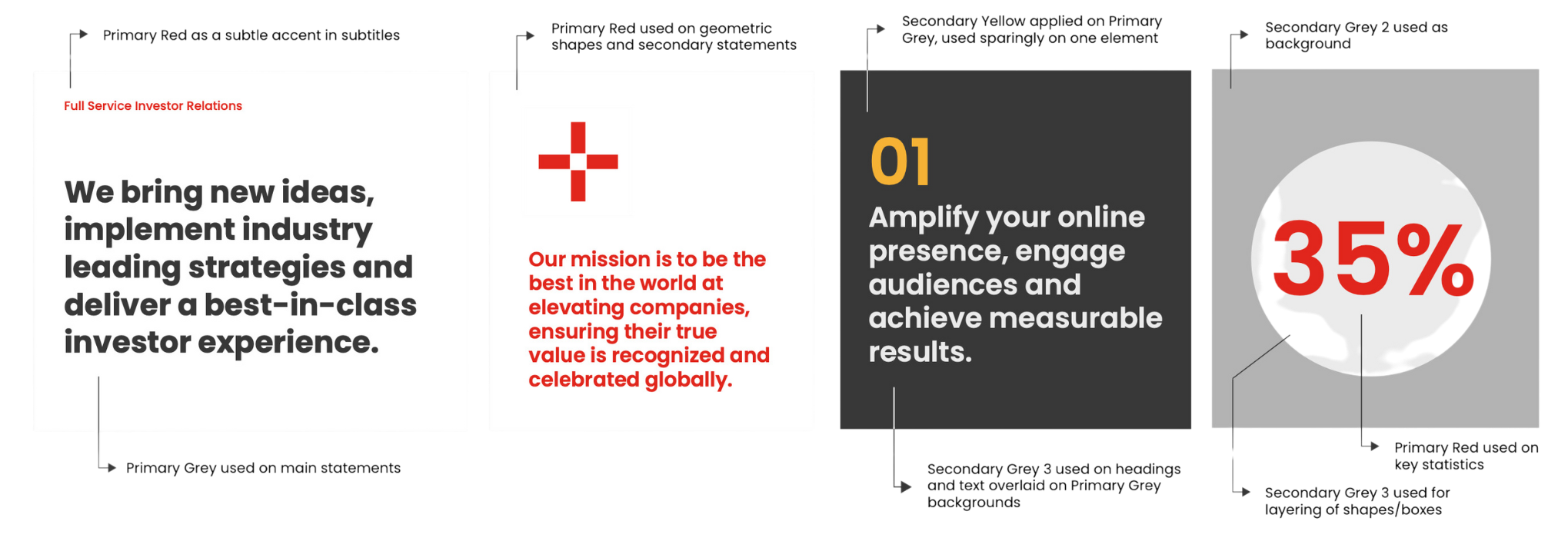 Note on colours: The Secondary Yellow colour is to be used in moderation for small accents, applied only on top of the Primary Grey and white backgrounds.
