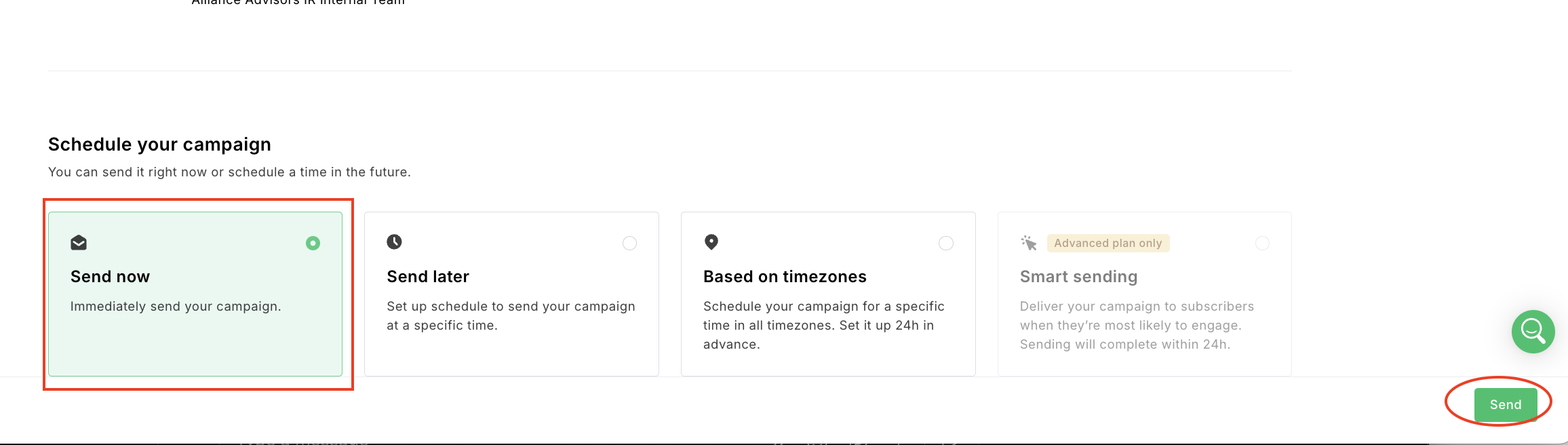 Then, click on the Send now if not already checked, then click on the green button “Send”.