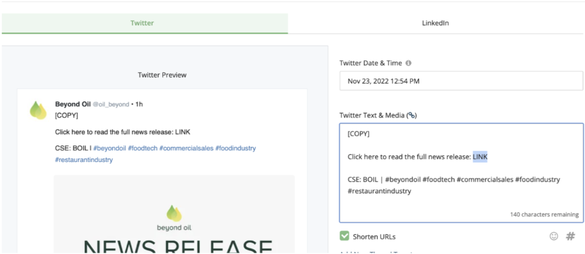 Go to each channel (Twitter, LinkedIn or Facebook tab) and manually add the link where it says so.