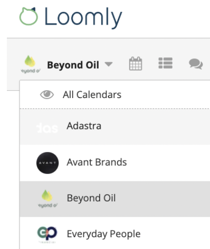 In the top left corner, click the dropdown menu to view all our client calendars, then select the desired client.