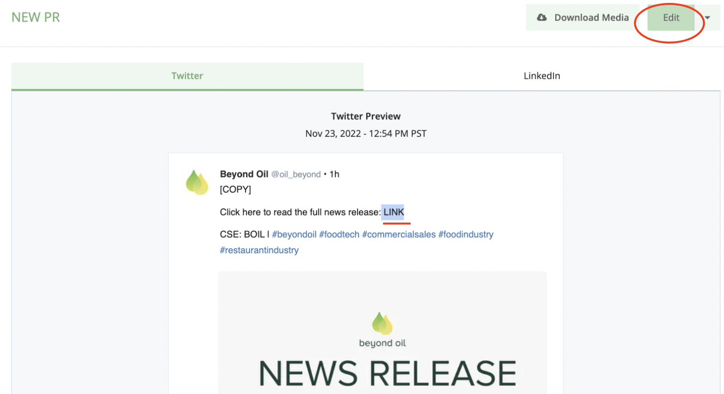 Make sure you have the website link to add into the post, then click on the “Edit” on top right.